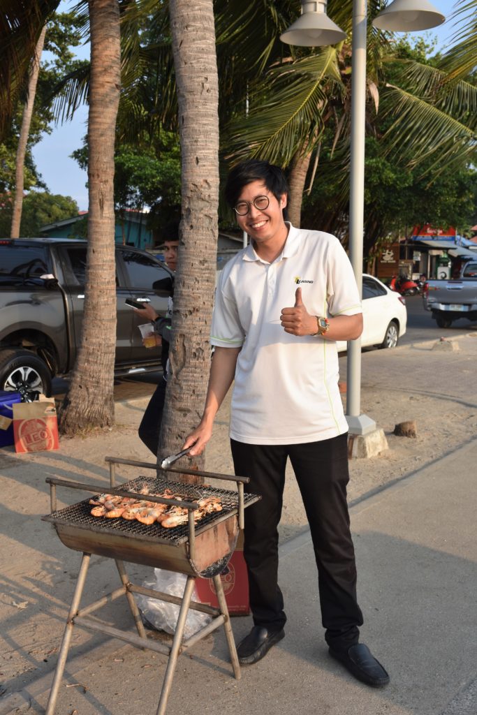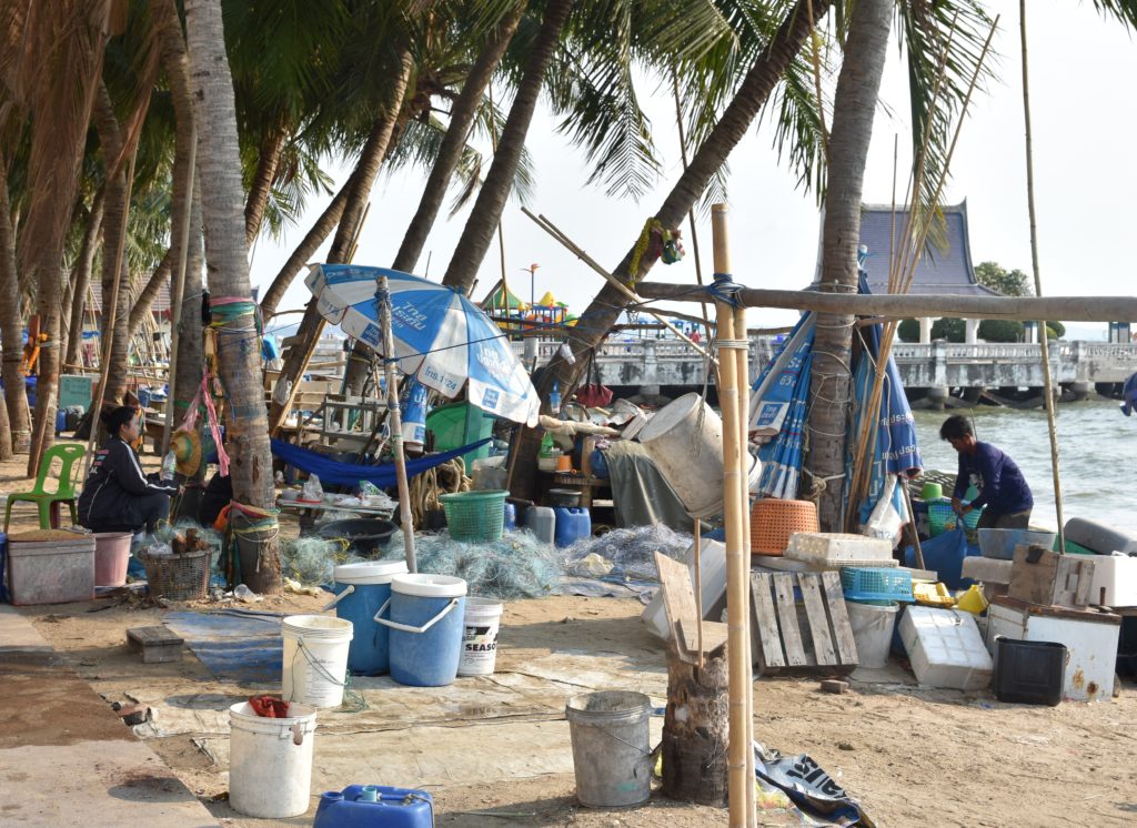 Für die Fischer, die ganz am Ende des Strandes neben dem bei Sportlern und Fotografen beliebten Bangsaen Lang Beach Public Park ihr traditionelles Revier halten, geht es dann übrigens erst richtig los. Denn sie sind „nachtaktiv“ – wie an vielen Stellen entlang dieser Küste. Es geht beim Sonnenuntergang hinaus und die Nacht wird wenige Kilometer vor der Küste in den schaukelnden Holzkähnen verbracht – auf der Jagd nach Tintenfisch, Krabben und was einem küstennah sonst noch so in die Netze geht. Und wo könnte frisch gefangener und frisch zubereiteter “Thai Seafood“ daher besser schmecken als in Bang Saen. Au revoir, Noon. See you, Mixer. Bon voyage, Goi und Aom.
