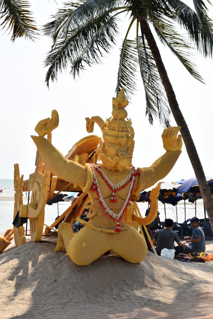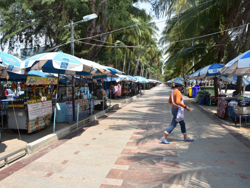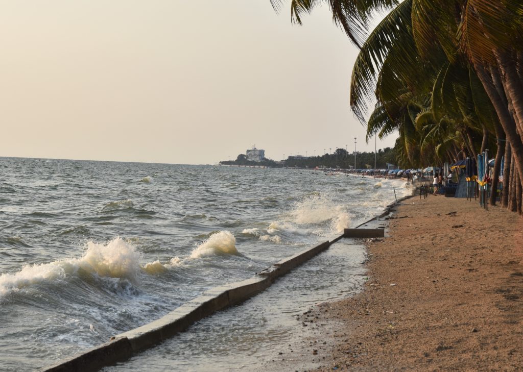 Nur: Montagmorgens ist ein schlechter Zeitpunkt! Denn die Folgen eines langen Wochenendes sind dann am Strand, entlang der beeindruckenden Palmenpromenade und im weiteren Umfeld zu besichtigen und sie sind nicht wirklich sehenswert. Mich hielt von jenem morgendlichen Schwimmgang ein wahrlich abschreckender Wulst von Plastikmüll, Essensresten, Sonnencreme und anderen Substanzen ab, der sich direkt an der Wasserlinie behäbig vom leichten Wellengang immer wieder umwälzen ließ. Da ich ein wirklich leidenschaftlicher Meer-Schwimmer bin, überlegte ich einen Moment, ob ich den Wulst mit einem großen Ausfallschritt übersteigen solle, um dahinter dem Badevergnügen zu frönen. Aber die optische – und vermutlich auch tatsächliche Verunreinigung – zog sich auch hinter dem hochkonzentrierten Bereich in Höhe der sich brechenden Wellen weiter. So ließ ich es bleiben und strich Bang Saen zunächst für viele Jahre von meiner thailändischen Strand-Landkarte.