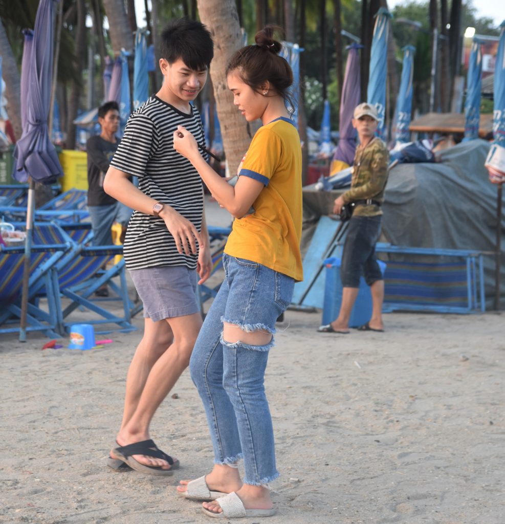 Und auch Mixer schaut dort gerne mal vorbei, wenn sie ihren „Mixer Hair Classics“-Laden abends schließt. Es geht beschaulich zu während der Woche, in Bang Saen. Entlang der Strandstraße wird gegrillt, gepicknickt, getrunken, gelacht. „Sanook City“ für Thais aller Schichten aus der Region. Und um Punkt 18 Uhr wird auch am Strand strammgestanden, wenn die Hymne aus den Lautsprechern erklingt und die Regierung den Tag für beendet erklärt. Jedenfalls offiziell.
