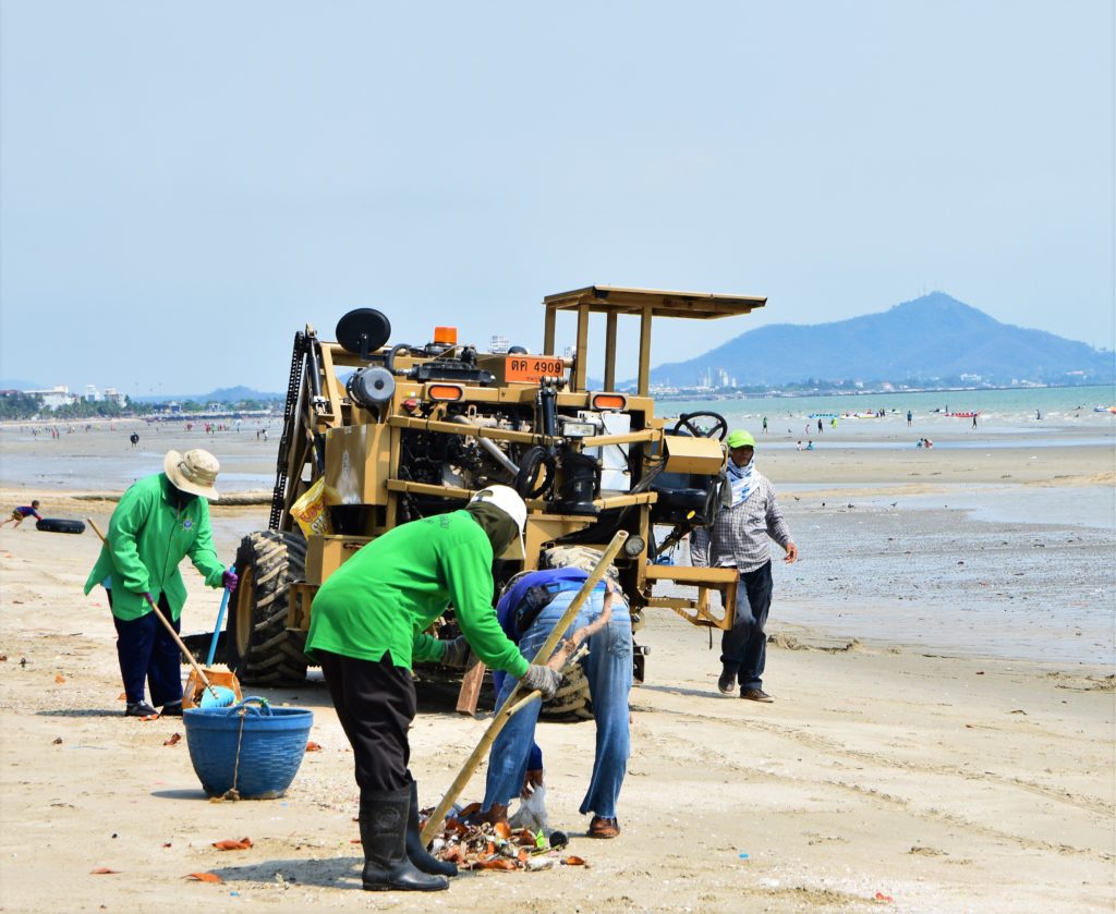 An einem frühen Montagmorgen wollte ich mich am Bang Saen Beach in die Fluten stürzen, wie ich es vor dem Frühstück gerne tue. Aber als ich an der Wasserlinie des unendlichen weiten Strandes ankam, nahm ich Abstand von dem Vorhaben. Der Zeitpunkt für ein Bad war denkbar schlecht gewählt – am Morgen nach einem intensiven Thai-Tourismus-Wochenende.