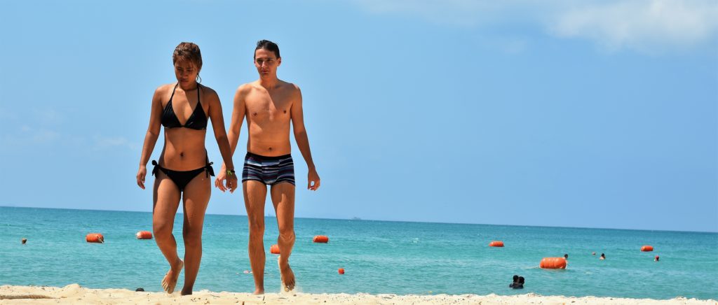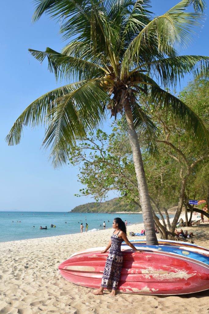 So verwundert es nicht, dass unmittelbar nach dem Abzweig von der Sukhumvit eine Wachstation zu passieren ist, die die Besucher – insbesondere die Nicht-Thais – sowie das Gefährt, mit dem man unterwegs ist, registriert. Und dort muss beim Verlassen des Gebietes auch wieder ausgecheckt werden. Also Baden unter Aufsicht. Wer das und einen kleinen Obulus für den Strandbesuch, der am Besucherzentrum weiter drinnen im Gelände zu entrichten ist, in Kauf nimmt, wird nicht nur eine wunderschöne Anfahrt über die hügelige Piste von der Sukhumvit zum Beach erleben, sondern einen echten „Ariel“-Strand: nicht nur sauber, sondern rein. Das gilt für das Wasser, den Sand und das Treiben an diesem wunderschönen Strand.