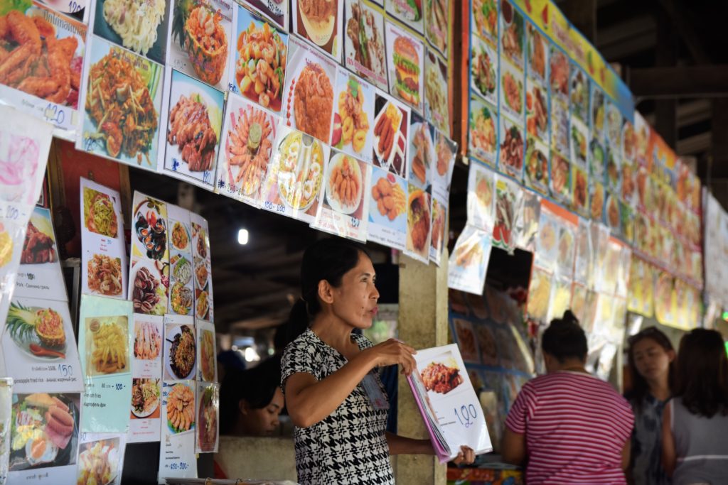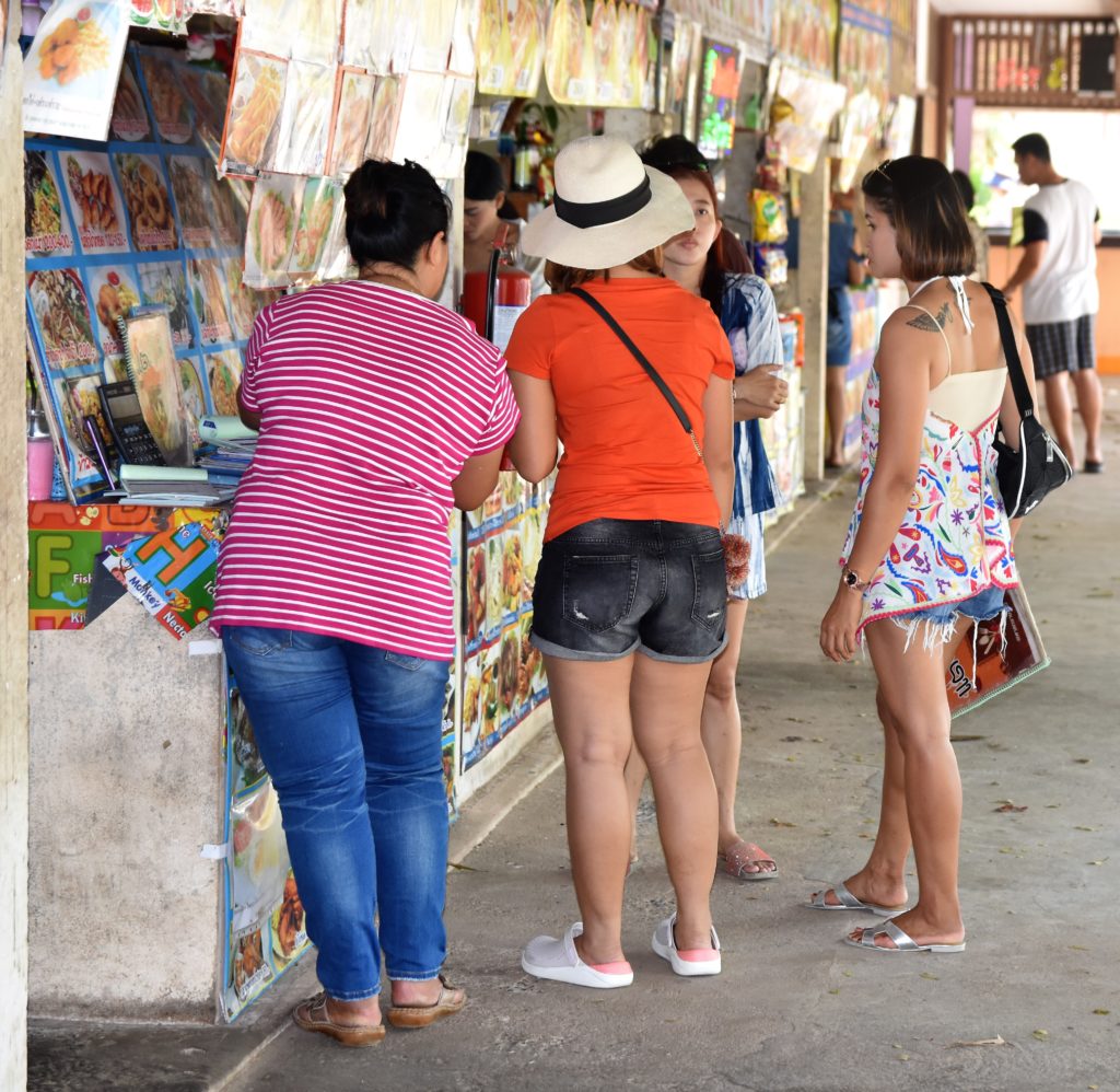 Die durch das Navy-eigene Beachmanagement zentral gesteuerte Strand-Infrastruktur stimmt jedenfalls. Müll ist hier ein Fremdwort, mal abgesehen oder besser wegen der überall ausreichend vorhandenen Mülltonnen. Geduscht werden kann „for free“ – direkt neben den Toilettenanlagen, die hier im Stundenrhythmus gereinigt werden. Dort befindet sich auch die „smoking area“, denn selbstverständlich gilt an diesem „Staatsstrand“ inzwischen nicht nur das generelle Rauchverbot, sondern es wird dort auch tatsächlich ausnahmslos eingehalten. Und natürlich ist die Versorgungslage thai-like: also von allem was der Thai- und auch der Farang-Magen begehrt, ist reichlich vorhanden. Das hält viele Thais jedoch nicht davon ab, in ihren reich gefüllten Picknick-Körben eigenes Essen mitzubringen. Denn das selbst Gekochte oder am präferierten Marktstand im eigenen „Baan“ erworbene Essen schmeckt immer noch am besten. Ist doch klar. Und ist vielleicht noch ein paar Baht billiger als das Angebot der Beachshacks.